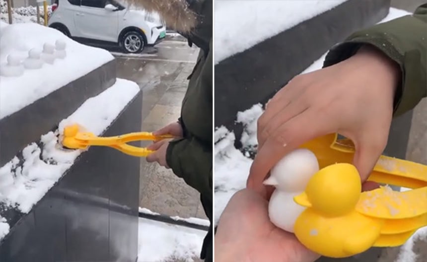 いわゆる雪合戦の時に使う雪玉を作るための型なんだけど、アヒル型もあるようで、型に雪を入れぎゅっと押すとアヒル型の雪玉が大量生産できちゃう。