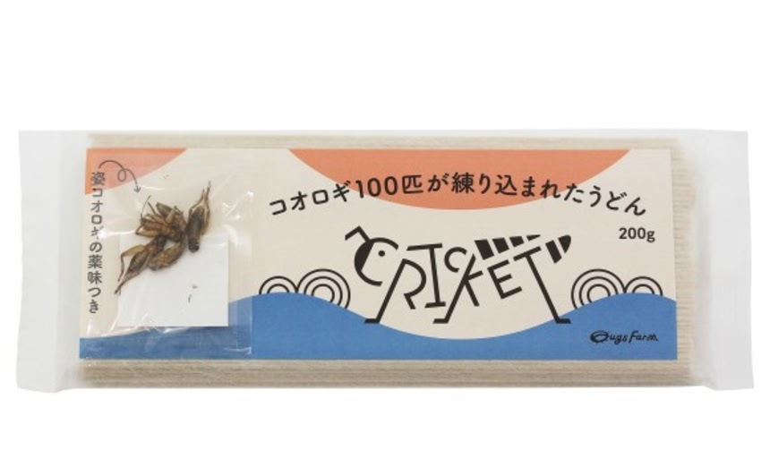 食べやすく粉末にしたコオロギを日本人に馴染み深いうどんに加え、昆虫への抵抗を減らした昆虫食初心者にもよさげな商品だ。