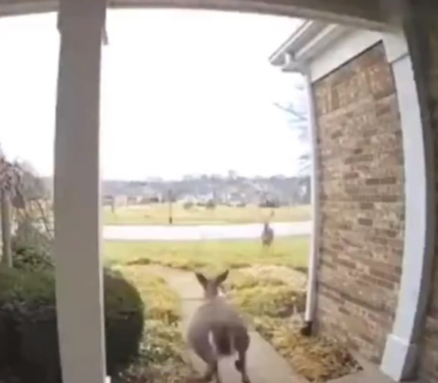 この画像を大きなサイズで見る鼻先でドアベルを押していたのはなんと鹿!