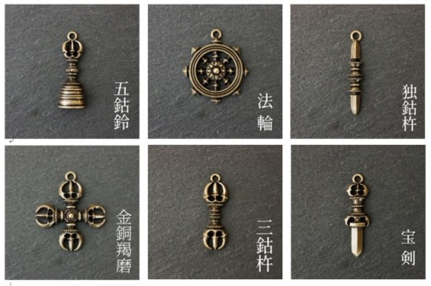 この画像を大きなサイズで見る空海の開いた真言密教の祈祷や法要に使用する密教法具をモチーフにした、ヨーロッパのアンティークチャームのようなチャームコレクション。