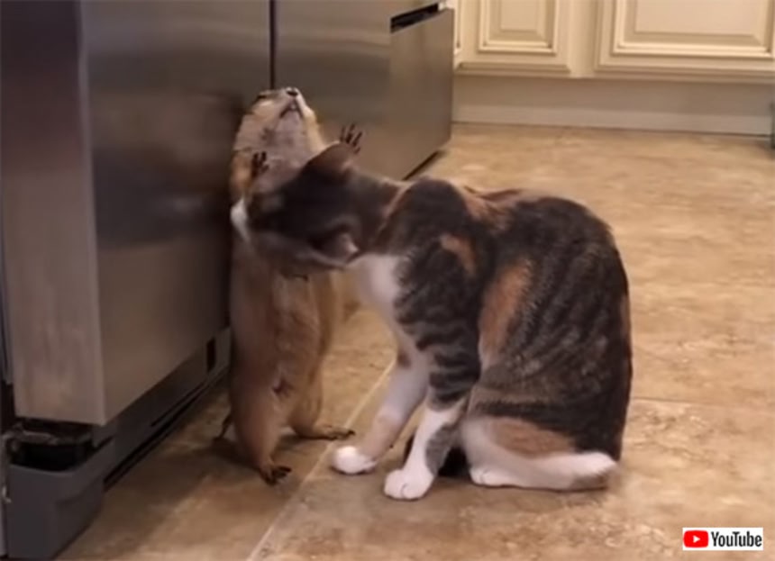 ・プレーリードッグは仲間意識が強く、口と口でキスをしたり、抱き合って挨拶するかわいい生き物。猫と友情関係を築いたんだね。