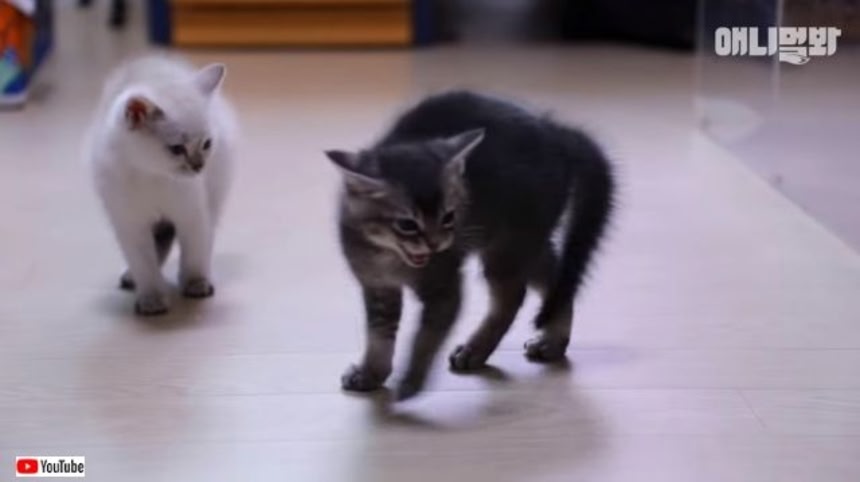 Kitten Clenches Fist When Meeting A Papa Cat For The First Time LOL