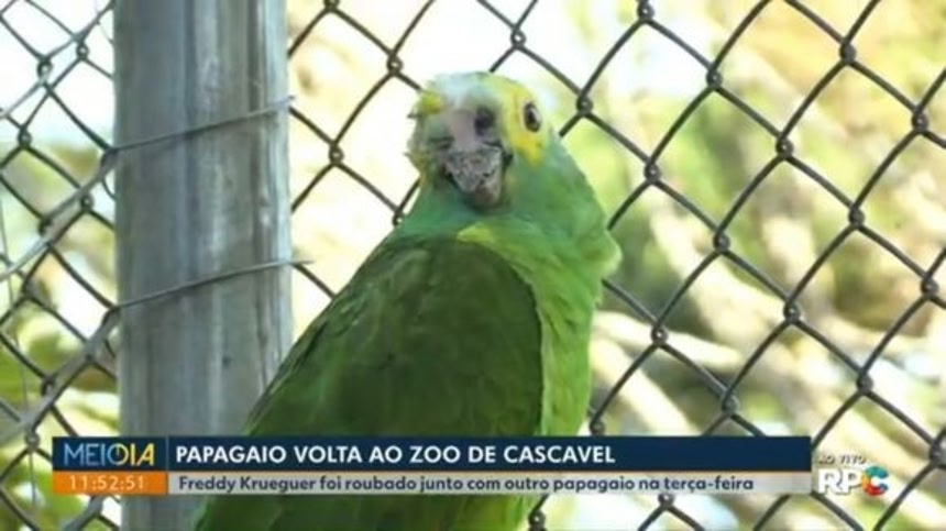 この画像を大きなサイズで見る4月18日。アオボウシインコのフレディは、無事にブラジル、パラナ州のカスカベルにある動物園に帰還した。ケージ脇の松の根元にいるのを、職員に発見されたのだ。