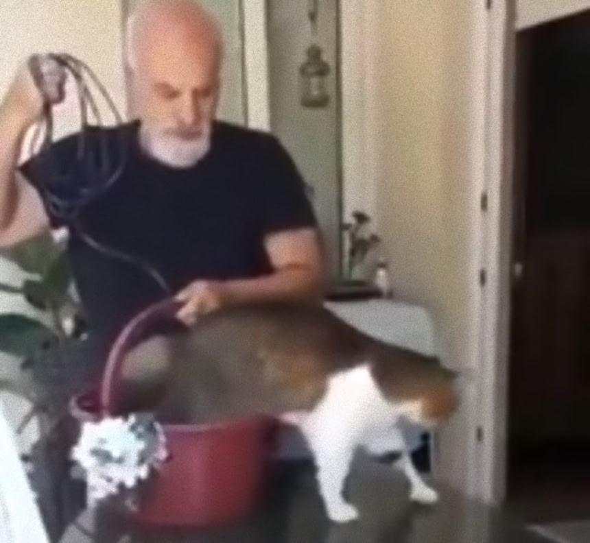 おじいさんは猫の入ったバスケットを注意深く持ち上げ