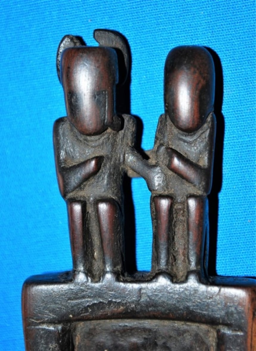 この画像を大きなサイズで見る儀式用の包みの中に入っていた、向精神性のある植物を粉砕するのに使われたと思われる木製のタブレット