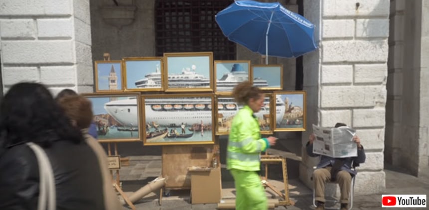 さて、今回の映像がバンクシーによるものだとすると、ヴェネツィアに迫る大きな船は何を意図するのか?