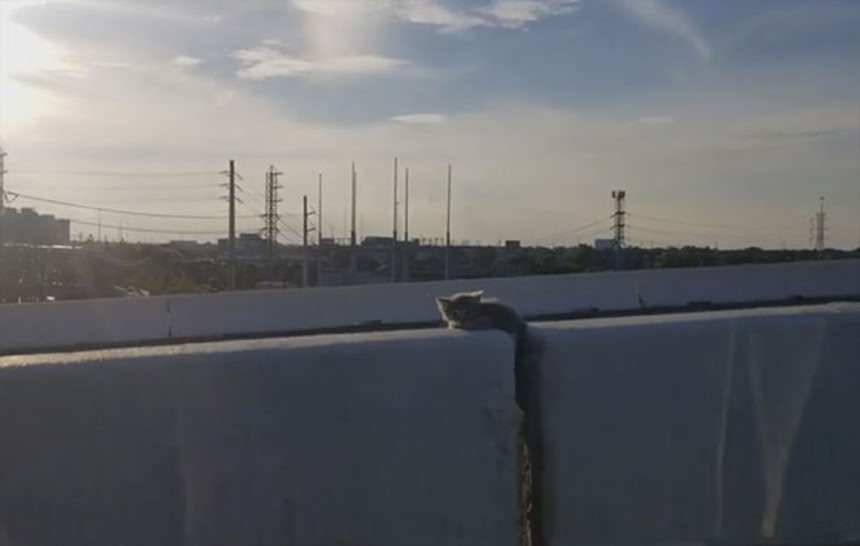 Kitten stuck on freeway(Youtube,Robert Acuna,v=hTbhhWo5yU4)