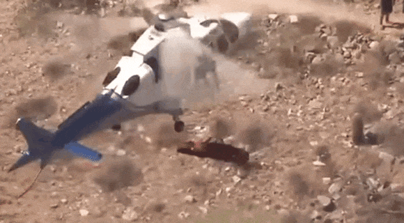 この回転は空中停止中のヘリの回転翼から生じる乱気流で引き起こされた。