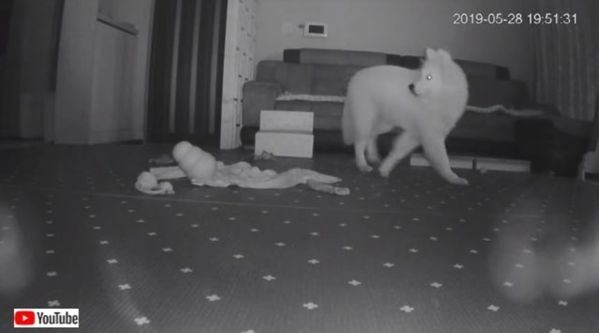 まあ、普通に、写っていない右側の部屋で飼い主がいたずらしてるだけよ。
