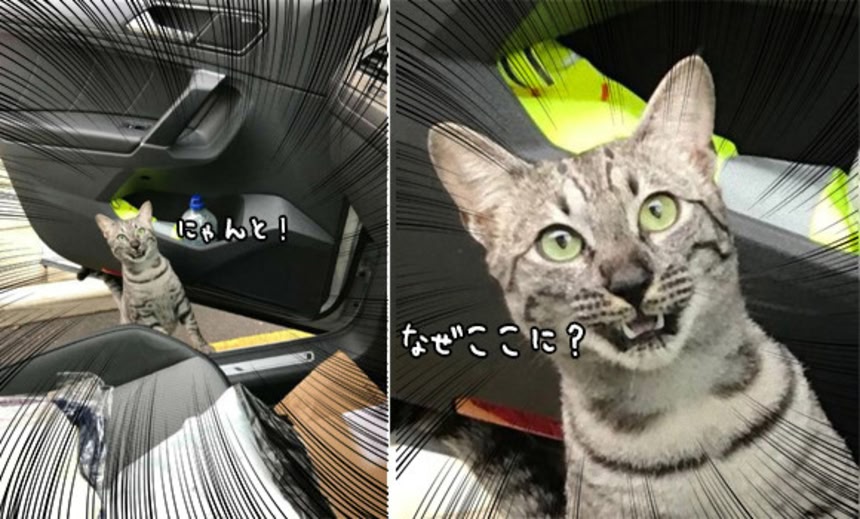 旦那が社用ハイエース運転していたら猫の鳴き声がして、急いでコンビニの駐車場に入って探したらスペアタイヤの上にしがみついていて(ハイエースは床下にスペアタイヤが設置されている)、他のお客さんにも協力してもらって捕まえられたそう。