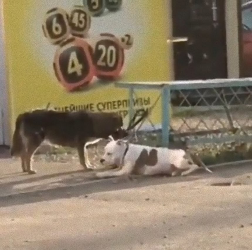 7月14日、ドミトリー・ティムチェンコさんと友人は、町にある店に買い物に出向いた。その時、店の前のフェンスに一匹のピットブルが繋がれているのを発見した。