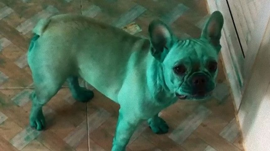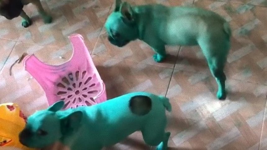 タイにお住いのヤーダ・オンソムジトさん宅で事件は起きた。先月13日の朝、ヤーダさんが目を覚ますと愛犬2匹が色鮮やかな緑色に染まっていたのである。