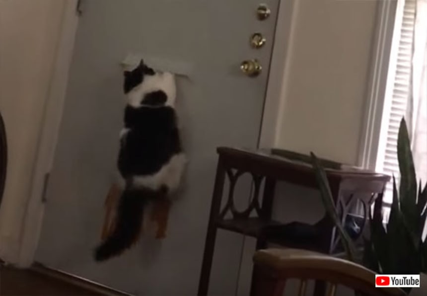 2014年の記事『肉球ひとつでダウンさ!郵便局員とドア越しで熱いバトルを展開する猫』を内側から見たら、こんな感じなのかな?