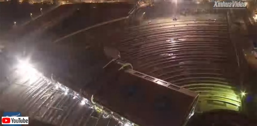 今月6日、中国の廈門(アモイ)市で巨大なバスターミナルが水平に90度回転する映像が公開された。