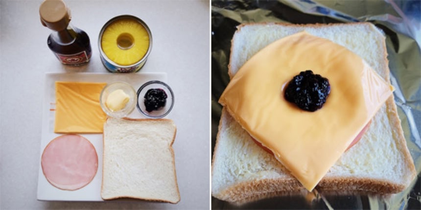 この画像を大きなサイズで見る熱を加えることでパイナップルの缶詰の酸味が緩和され、ほどよい甘味にハムの塩分がマッチング。絶妙の甘辛感覚となる。
