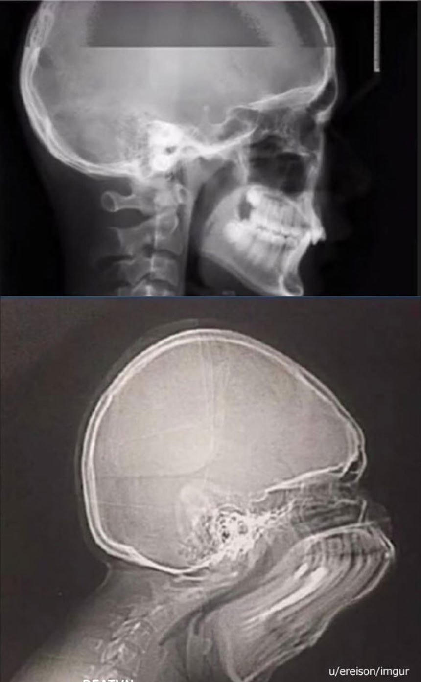 これからお見せする画像は頭部レントゲン撮影中にうっかりクシャミをしてしまったときのものだそうだ。もはや人というよりは、エイリアン…