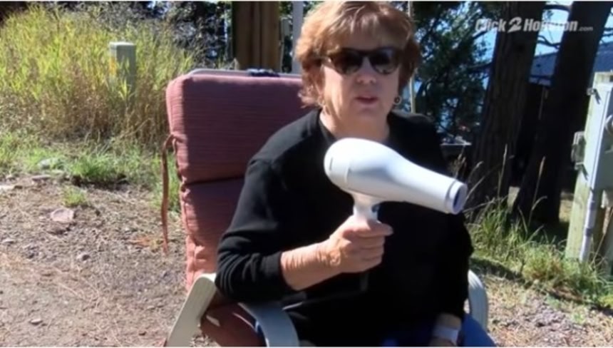 通常、レーダー探知機は四角く、ドライヤーとは似て非なるものだが、スピードを緩めなければならない場所でもそうせずに走行しているドライバーは、恐らく大半が道路脇に現れたパティーさんにギョッとするのだろう。