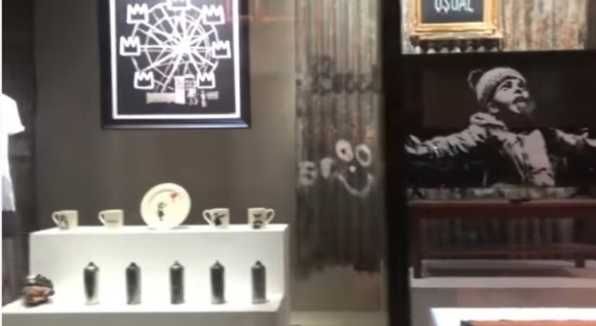 一晩のうちに築かれたバンクシーのショールームは、本人のインスタアカウントでも紹介されているが、単なる風刺的アートのディスプレイではなく、どうやらバンクシー自身の商標権を守るためにオープンしたようだ。