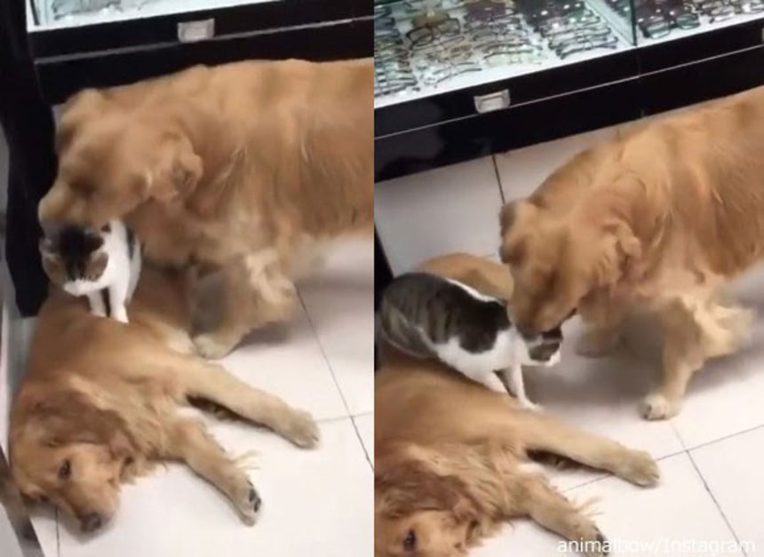 普段からゴールデンズをクッション代わりに使用していた猫だが、今回は別だったようだ。