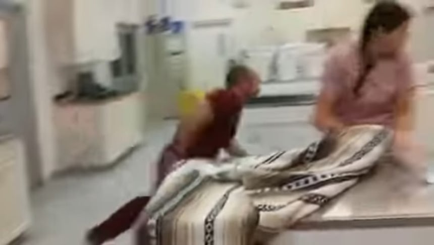 この画像を大きなサイズで見るすばしっこく逃げ回る猫を追いかけ回す獣医。しばらく経っても捕まえられないとわかり、別の方法を試みることに。