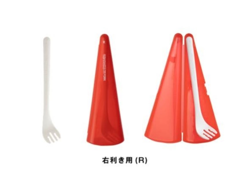 左利き用と右利き用の2種類が用意されていて、持ち運びに便利な専用ケース付きのためオフィスでカップヌードルを食べるときにもスマートだ。