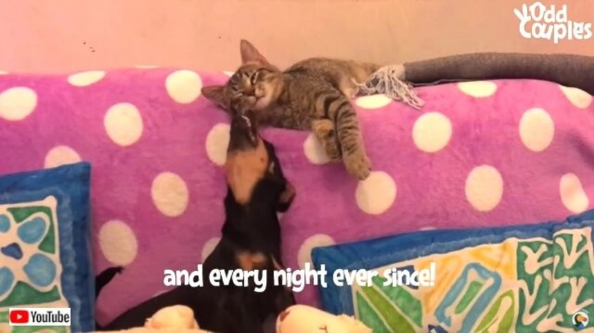 この画像を大きなサイズで見る人懐っこいタコくんは、このひとりぼっちの子猫と親友になることに決めたらしい。