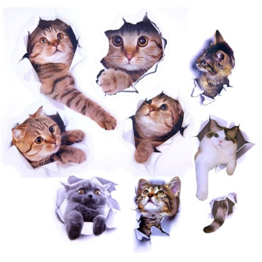 この画像を大きなサイズで見る壁や板などをぶち破って猫が侵入している風を演出した大きなステッカーがAmazonで販売されており、海外で話題となっている。