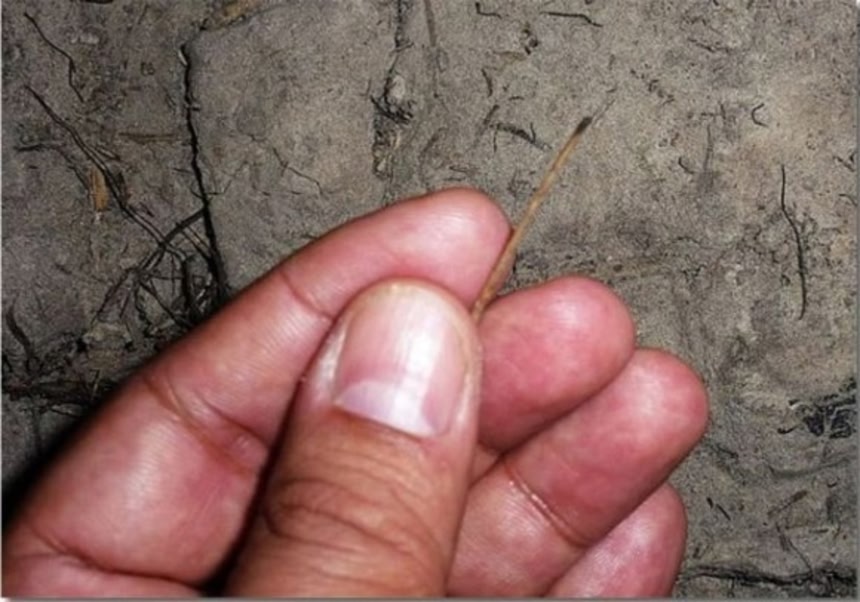 この画像を大きなサイズで見る更に2人は、物体を支えていたとみられる長方形の支持脚のような4つのマークも見つけた。10×15cmのその跡は均等に4か所に分布されており、地面は1.5cmほど窪んでいた。