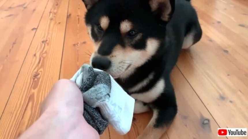 「ご主人のモノはボクのモノ!」とばかりに、靴下を返してくれないマックスくん。その微笑ましい飼い主さんとの掛け合いを、ぜひ楽しんでもらいたい。