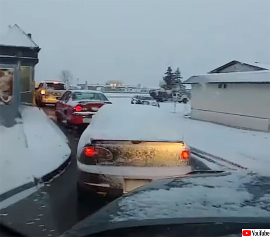 この画像を大きなサイズで見る冬のさなか、雪が積もった日のカナダでのドライブスルーでの出来事だ。ファストフードのドライブスルーには順番を待つ車が多く並んでいた。