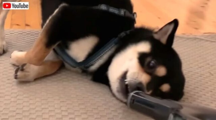 さて黒柴マックスくんの場合なんだけど、掃除機との関係はまだまだビミョーな段階みたい。一生懸命掃除機とお友だちになろうとしている(?)マックスくんを見てみよう。