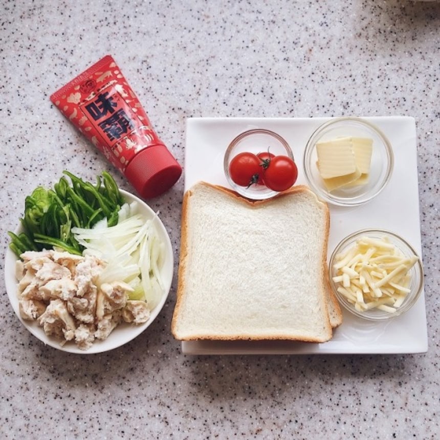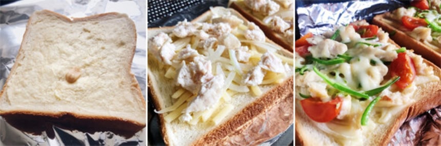パンに調味料を塗り具を乗せて焼く