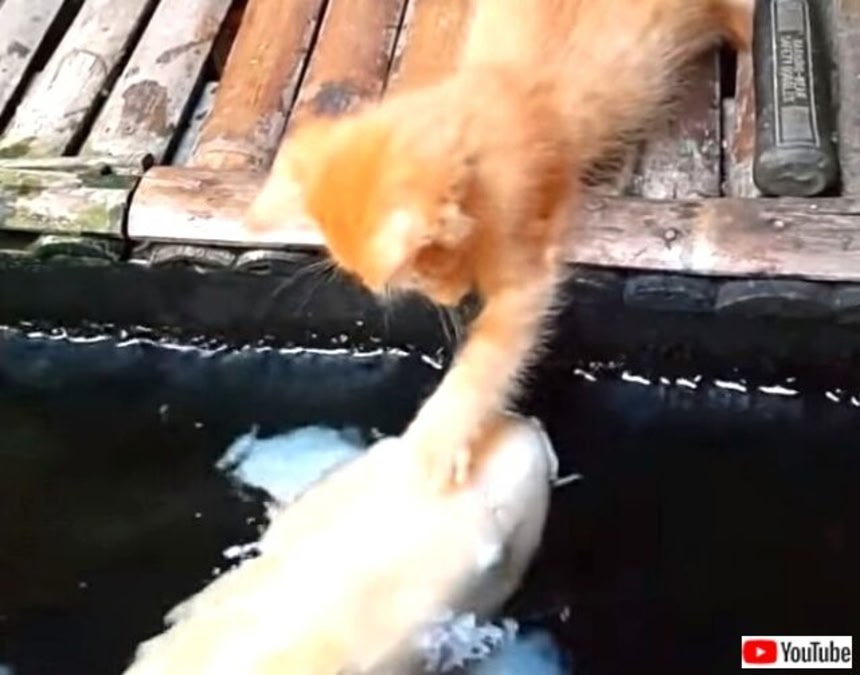 とはいえ彼らの関係は、いつも友好的とは限らない。以下の動画は、水面を覗いている子猫に魚が襲い掛かる瞬間が映し出されているので閲覧注意だ。この後無事救出されていることを祈る。
