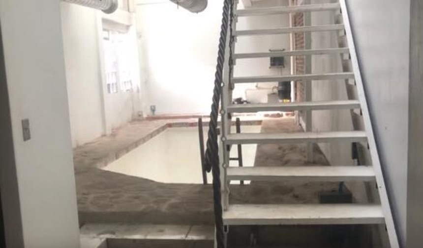 この画像を大きなサイズで見るこう聞くと魅力的な一軒家のようだが、1階部分には大きなプールが!幅は約4.6mと見られるが、けっこな深さのようだ。