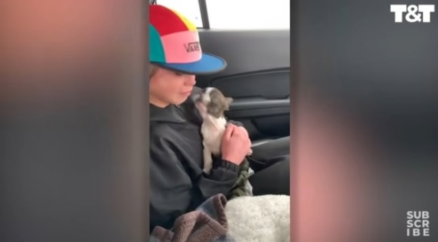 この画像を大きなサイズで見る「本当に!?」ときょとんとするローガン君。しかし、その後すぐに亡き父が自分のために生前、子犬を手配してくれたのだと知り、涙ぐんだ。