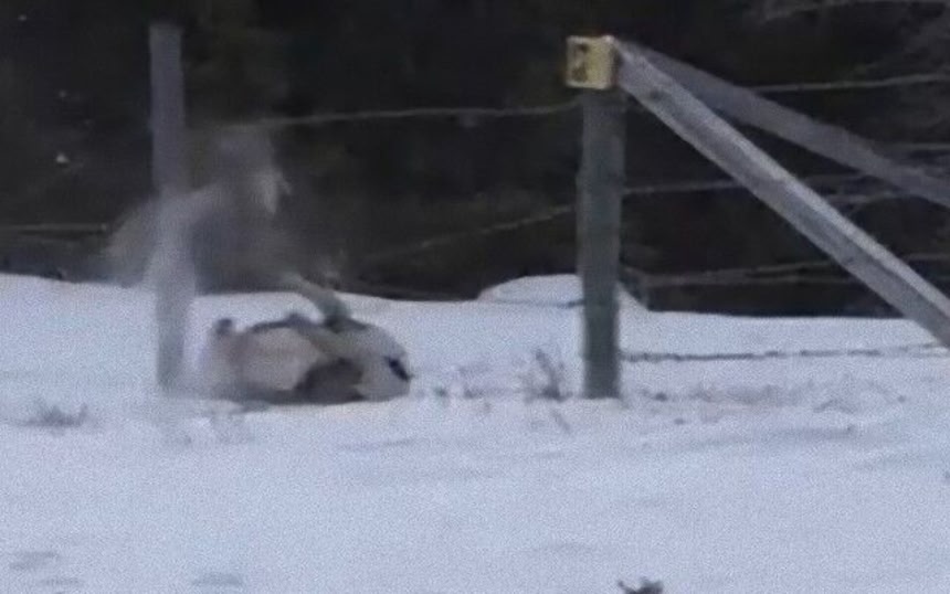 この画像を大きなサイズで見る氷点下の気温が続くカナダにて、雪の積もった草原地帯を小走りに進むビッグホーンの群れが目撃された。