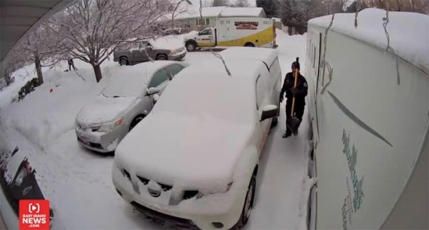 今月初め、アイダホ州で暮らす男性が、雪が積もっていたはずの駐車場の雪かきがいつのまにか終わっていることに気づいた。