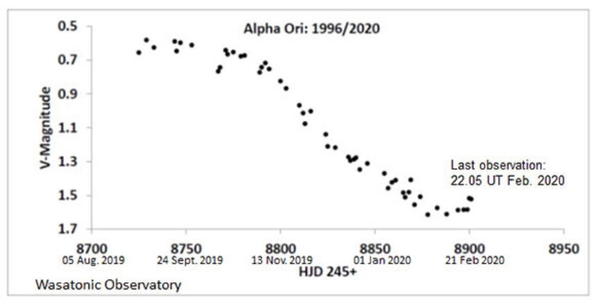 ベテルギウスは変光星だ。0.0等級から1.3等級の範囲で、定期的に明るさが変化する。確かに最近では前代未聞なほど暗くなっていたのだが、それも結局、普段のサイクルの一環であったのかもしれない。
