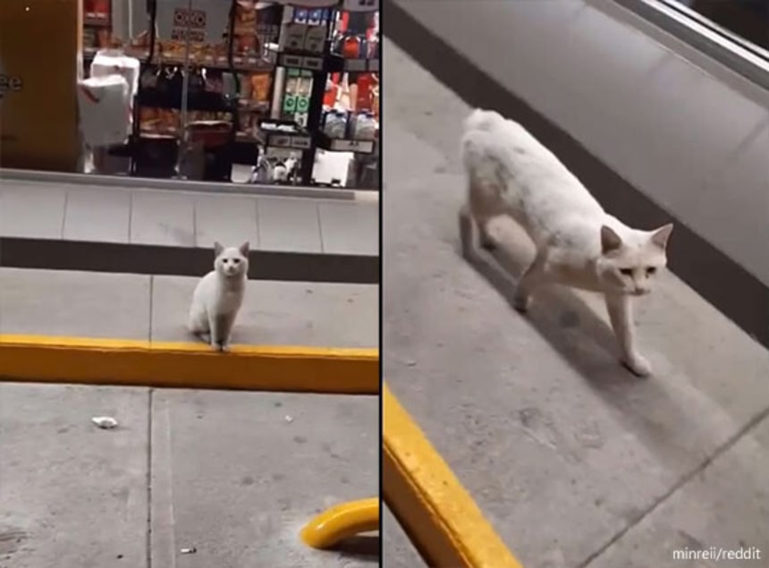 撮影者のタニア・サンツさんもそんな猫好きの1人だ。彼女は猫をスマホで撮影しながら近づいて行った。すると、猫はサンツさんを導くように後ろにある店の中へと入っていった。