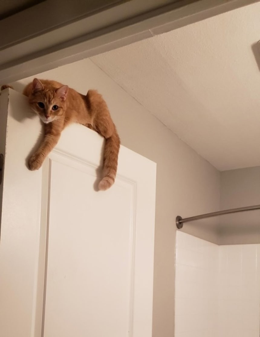 この画像を大きなサイズで見る2.ワッフルという名の猫はシャワー中はドアの上で監視してくれるらしい