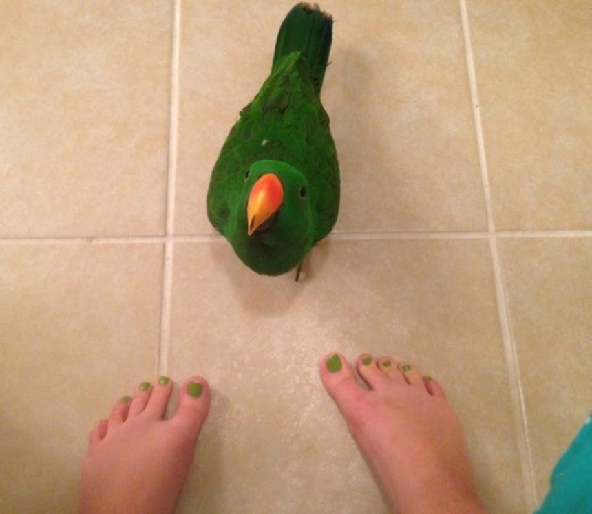 8のインコのカラーリングとペディキュアのマッチがGOOD