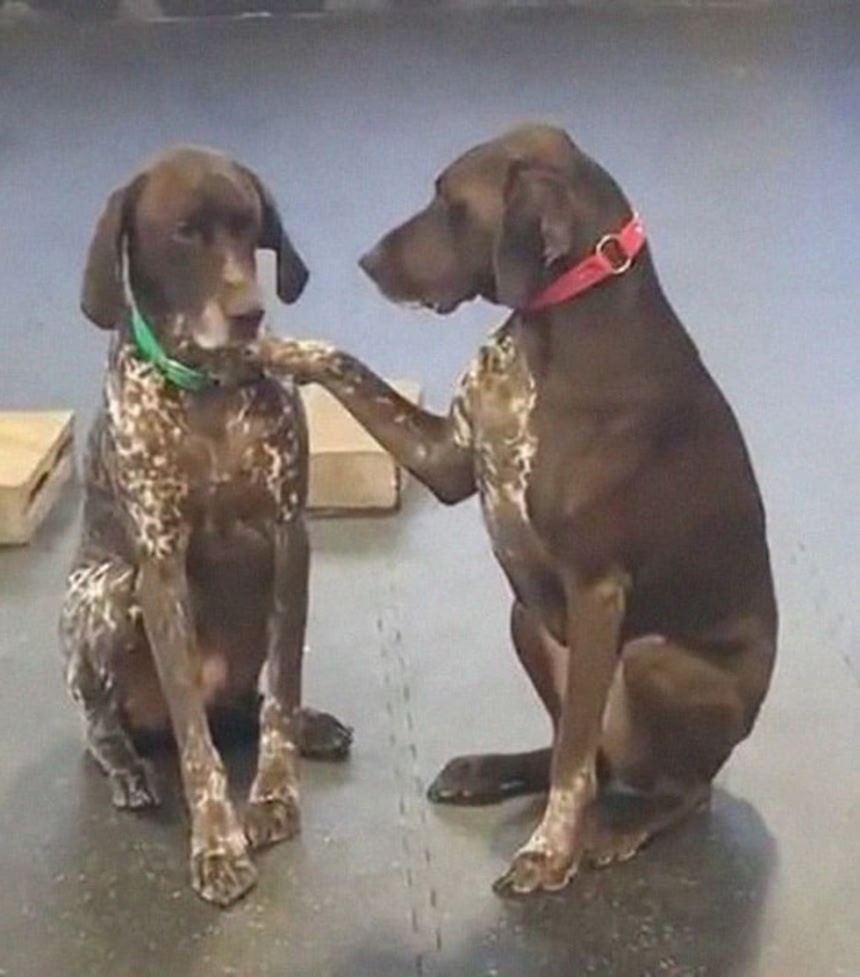 もしかして仲間の犬を励ましてるの?キュートな姿を捉えた動画がSNSでシェアされると、たちまち多くのユーザーの心を癒したようだ。