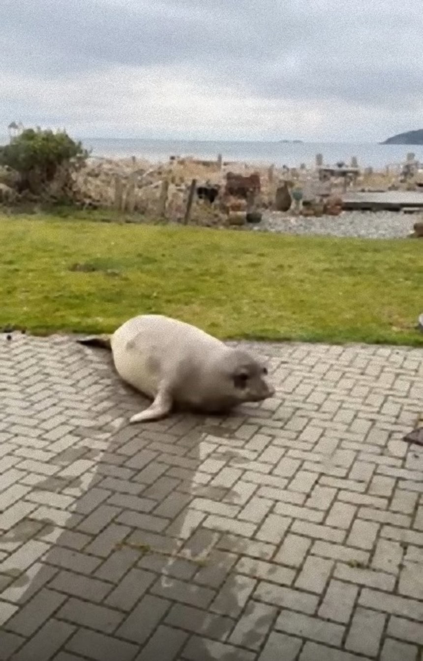 この画像を大きなサイズで見るそのアザラシは、アンドリッチさんの敷地を暫く這いずり回っていたが、アンドリッチさんの姿を見つけるとキッチンのガラス戸に向かって来た。