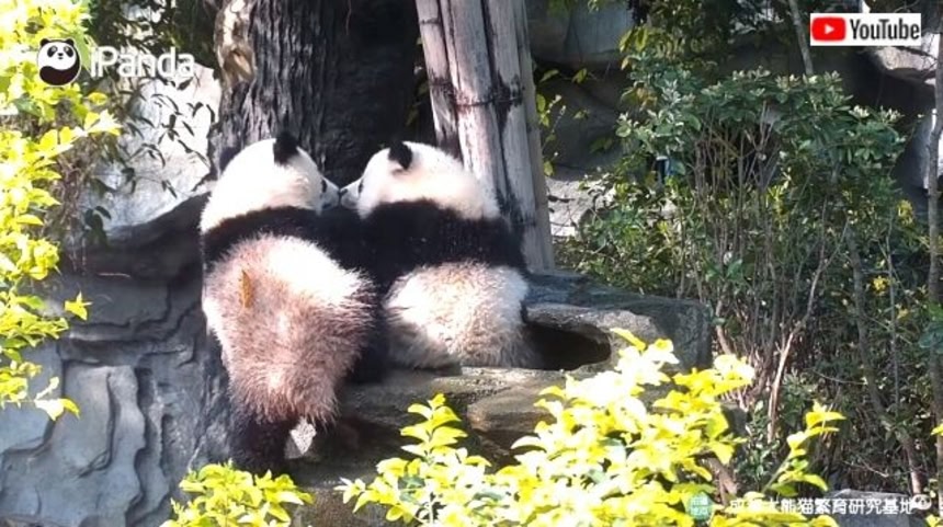 この画像を大きなサイズで見る「いやだよ」と元からいたパンダは当然拒否。すると後から来た方が実力行使に。