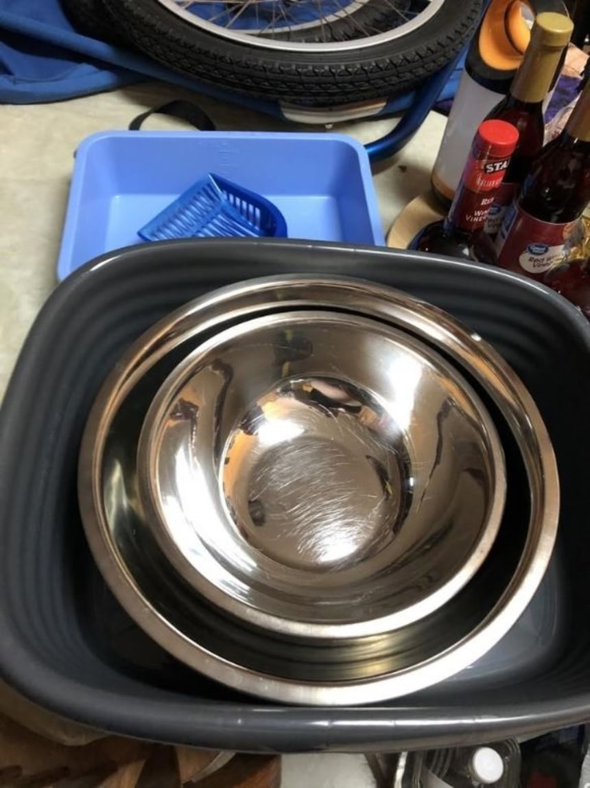 1.まずはボウルと洗浄した猫トイレを準備します。