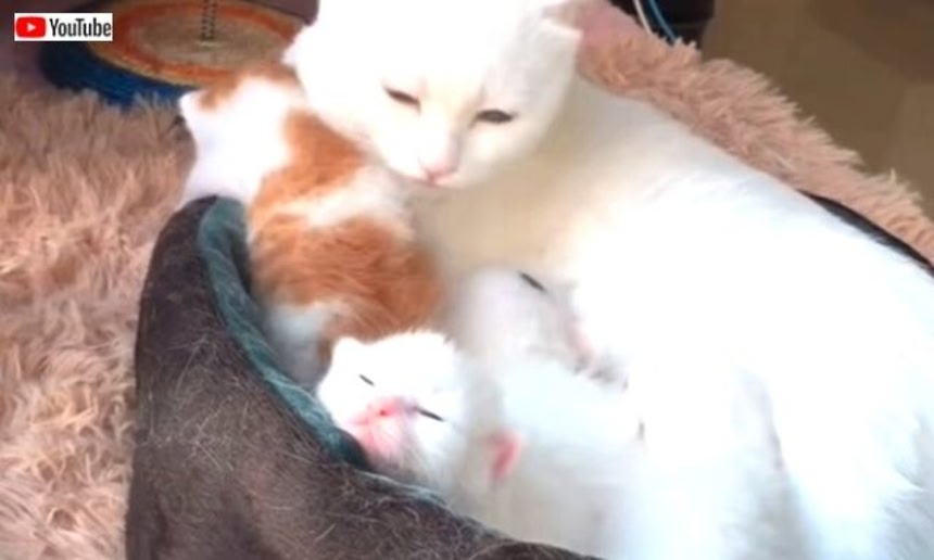ママとくっついているだけで、子猫たちは安心なんだ。