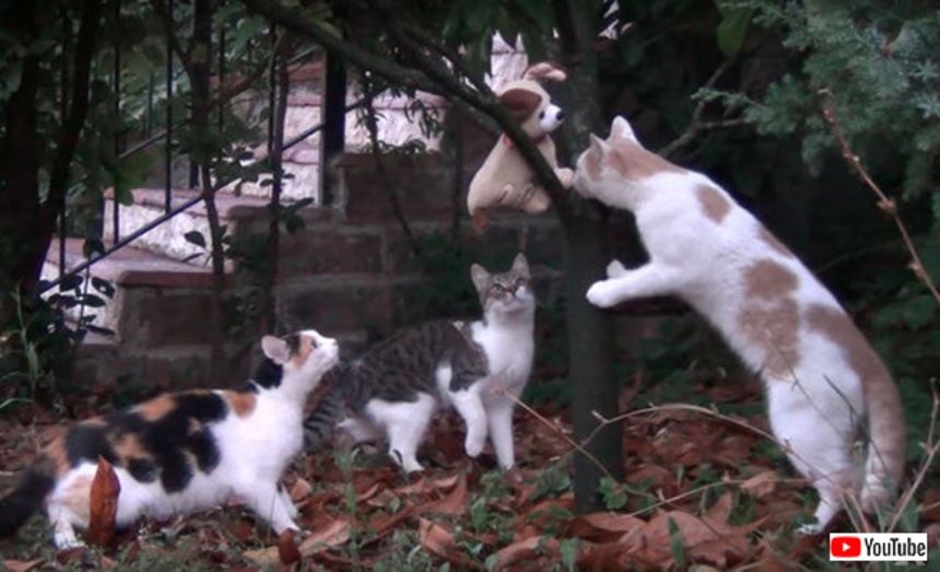 リードもつけず、野良猫たちに犬を近付かせるなんてどうかしてる。