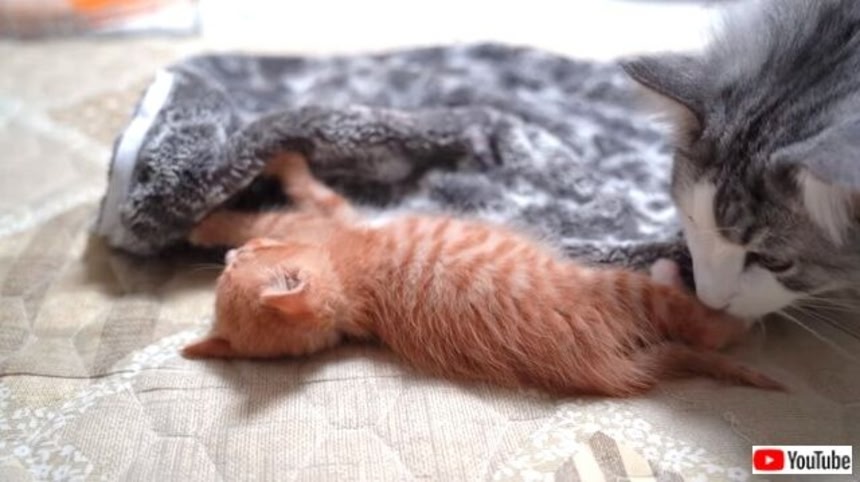 そしていろいろと考えた末、母親と死に別れた生後3週間の子猫を引き取ることに決めたんだ。そうして「タン」と名付けられた子猫ちゃんが、ミルキーとGBの暮らすおうちにやって来た!