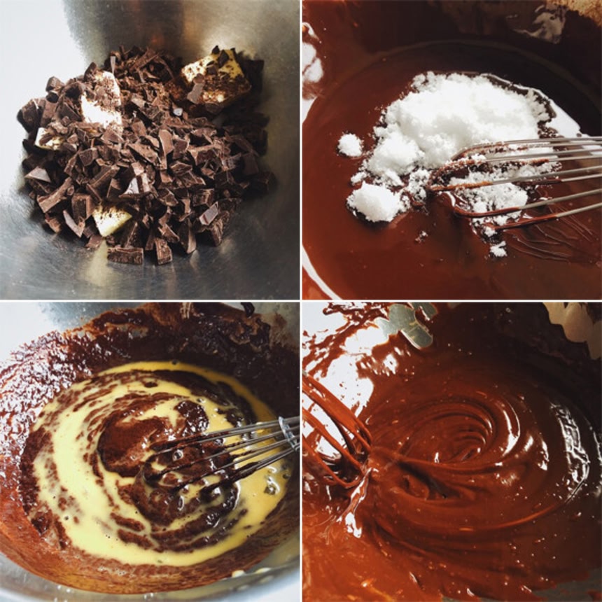 常温でテリーヌショコラ、冷やすと生チョコ感覚、レンジで軽く温めるとフォンダンショコラのようになり、温度によってさまざまに変化する食感と口溶けを味わえる。ではその作り方を見ていこう。