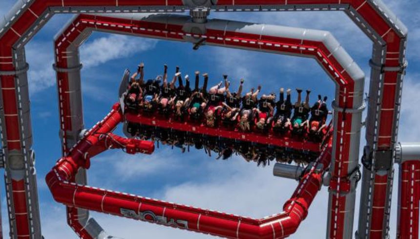 この画像を大きなサイズで見るこのジェットコースターは最高速度91キロで5つの回転箇所があり、最高高度は35メートル。クマたちがプルップルに揺れているのが、すごく楽しんでいるように見えて素敵。